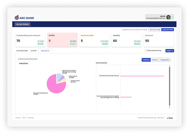Optimize loan origination, servicing, and risk management with Biz2X loan portfolio monitoring software.